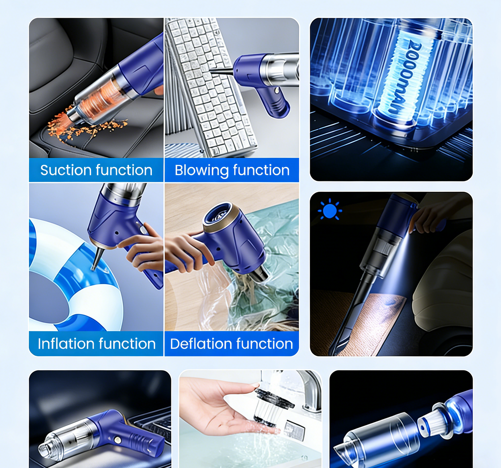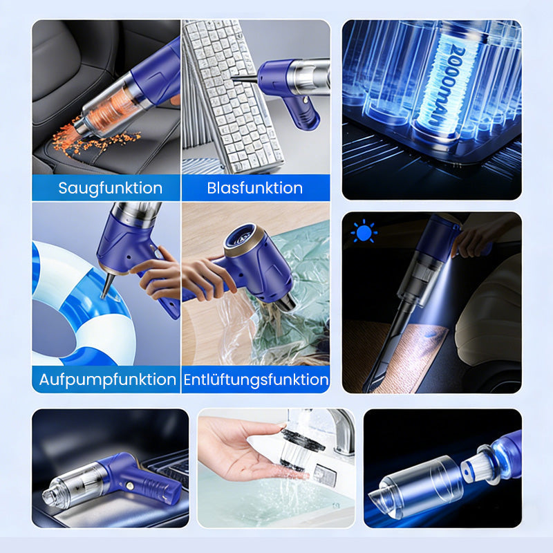 DUAL FUNCTION: VACUUM & BLOWER – More than just a vacuum cleaner. The integrated blower function quickly removes dust from sensitive keyboards and electronic devices or blows up small objects, offering versatile applications beyond the usual cleaning tasks.